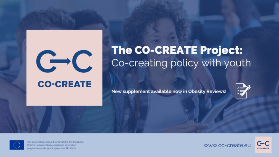 The main aims of CO-CREATE, as described in one of the supplement papers [Klepp et al], are to develop novel methods for monitoring, benchmarking, and evaluating relevant policies, and to collaborate with adolescents across Europe in developing novel policy options that will contribute to upstream overweight and obesity prevention, while also reducing inequalities in overweight and obesity.